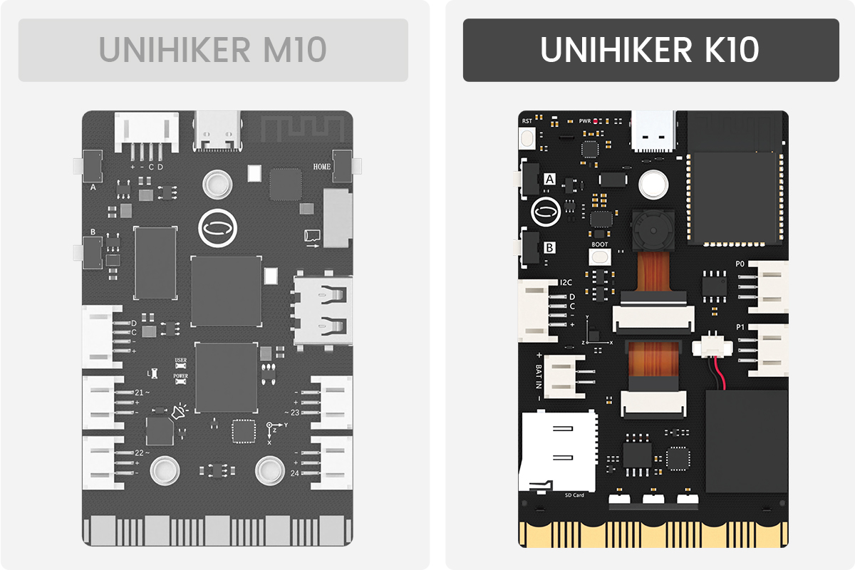 The UNIHIKER M10 and K10 can be distinguished simply by the presence or absence of a camera and USB-A port on the back.