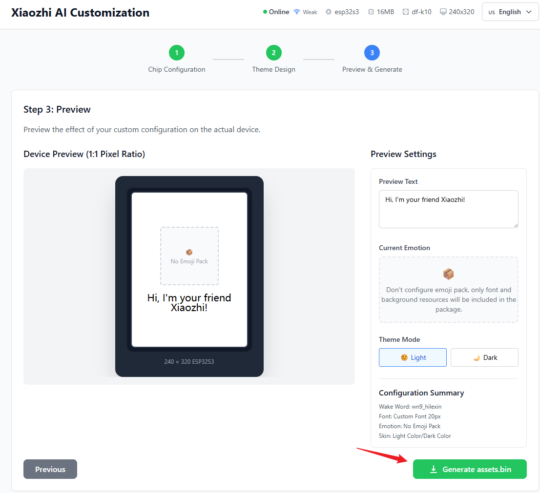 Finally, you can preview the results. Once you've confirmed everything is correct, click "Generate assets.bin".